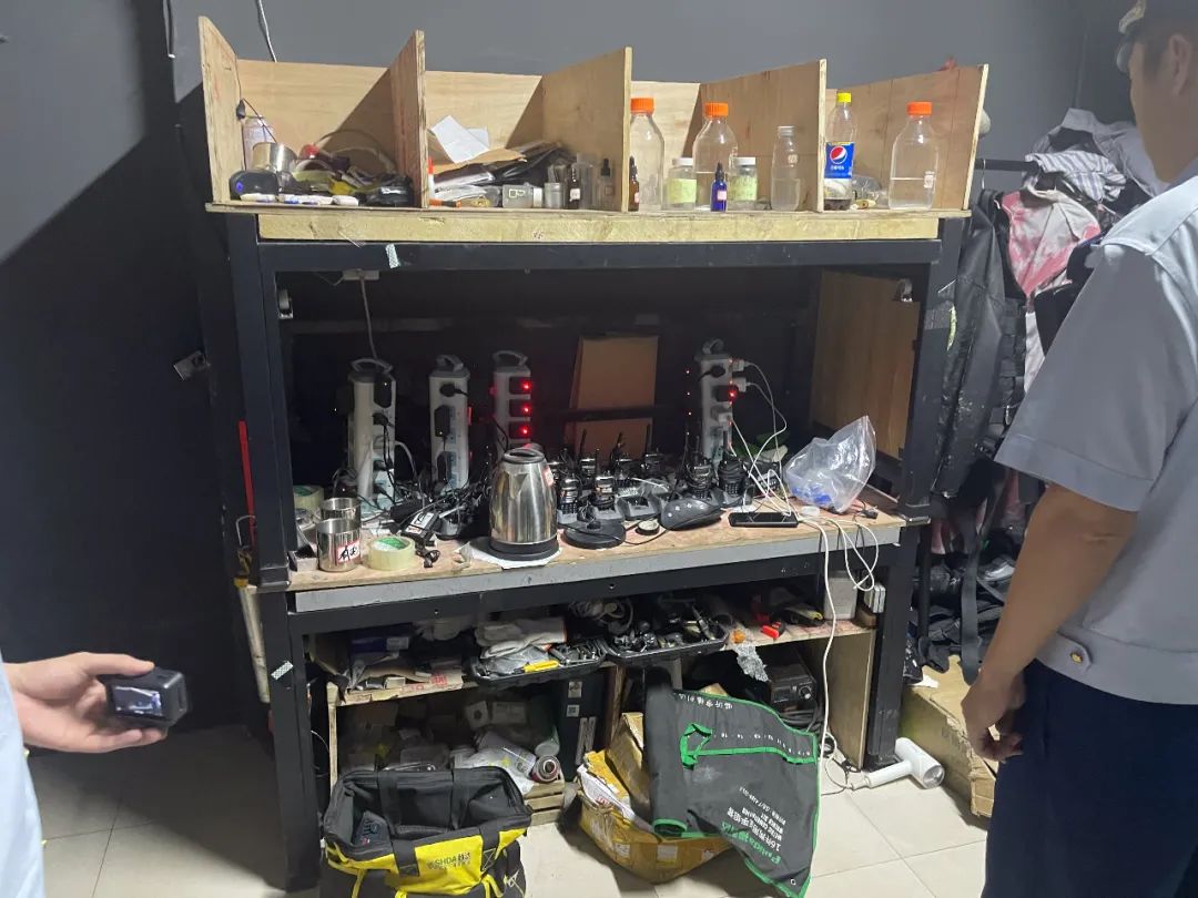 而随着检查的深入,各类消防隐患也出现在检查人员眼前。消防控制室内,有资质的设备控制人员没来上班。而消防控制室外,热水壶、对讲机等几十台用电设备集中在几个拖线板上进行充电,上面还摆放着不知名的化学试剂,一边还堆放着纸箱、衣服、木凳等易燃物品。