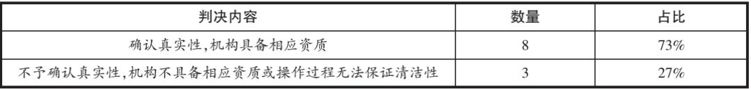笔者认为,所谓第三方电子数据保全机构(以下简称“第三方存证机构”)是指提供在线保全存证、侵权取证、维权鉴证等服务的中立第三方主体,主要由第三方即时加密固化电子信息数据的内容和形成时间,生成文件的唯一数字身份证,并将数据存证鉴别信息同步存储在国家信息中心,确保数据的真实性、公正性和有效性,从而赋予电子数据文件法律证明效力。由于对第三方存证机构资质的考察必然涉及存证操作过程的合规性,因此笔者将当事人对存证过程的清洁性主张归入对第三方存证机构资质认定的争论。从下表可看到不同法院对由第三方存证机构资质问题产生的电子数据真实性争议的认定情况。(见表2)