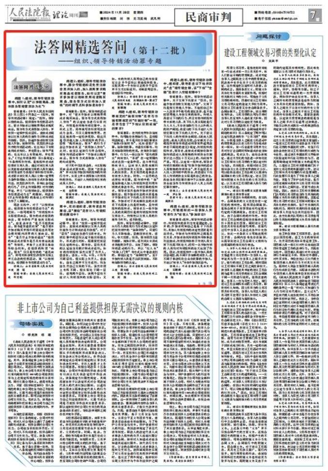法答网上线运行以来,咨询答疑质量和平台功能得到进一步优化,上下级法院业务交流顺畅高效,困扰审判一线痛点难点问题得到及时解决,“有问题,找法答”的理念已深入基层一线,深入干警内心。为进一步满足人民群众的多元司法需求,抓实“公正与效率”,最高人民法院充分挖掘法答网资源“富矿”,积极开展优秀咨询答疑评选工作,将具有典型性、前沿性或疑难复杂的法律适用咨询答疑通过人民法院报等媒体平台陆续发布,在更广范围更深层次发挥法答网释疑解惑交流、促进统一法律适用的功能效用,向社会传递崇法风尚,弘扬法治正能量。为此,人民法院报特开设“法答网精选答问”栏目,发布法答网精选咨询答疑。敬请关注。