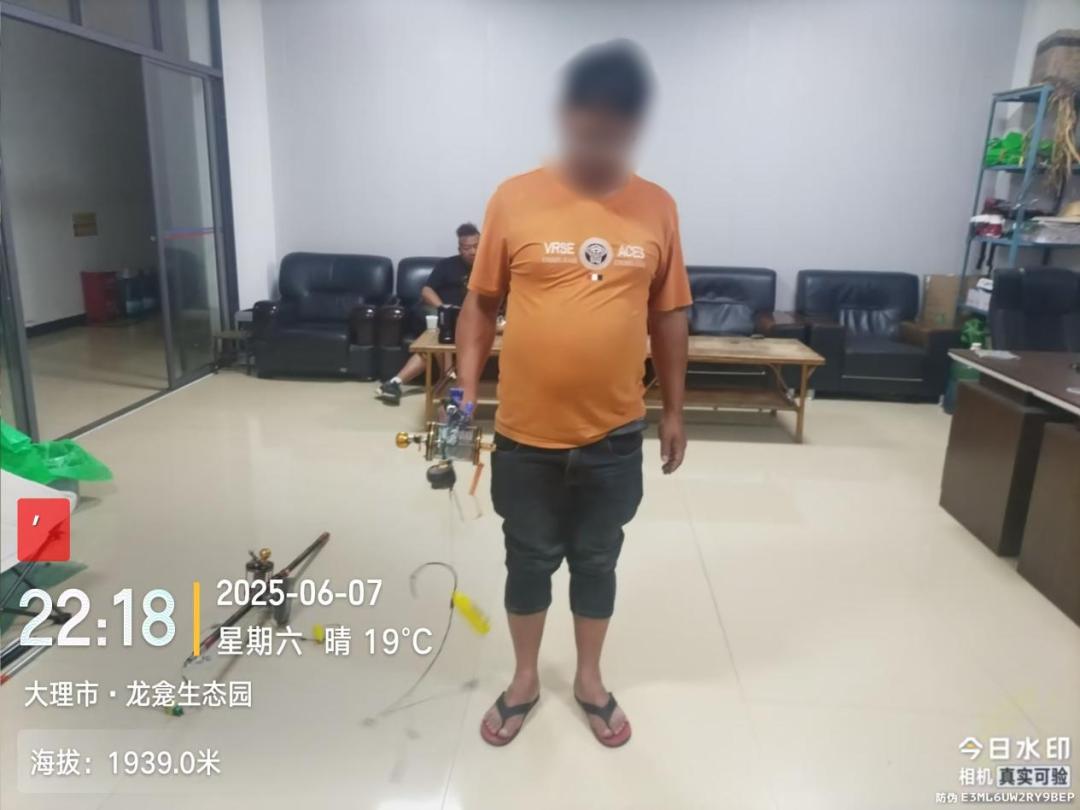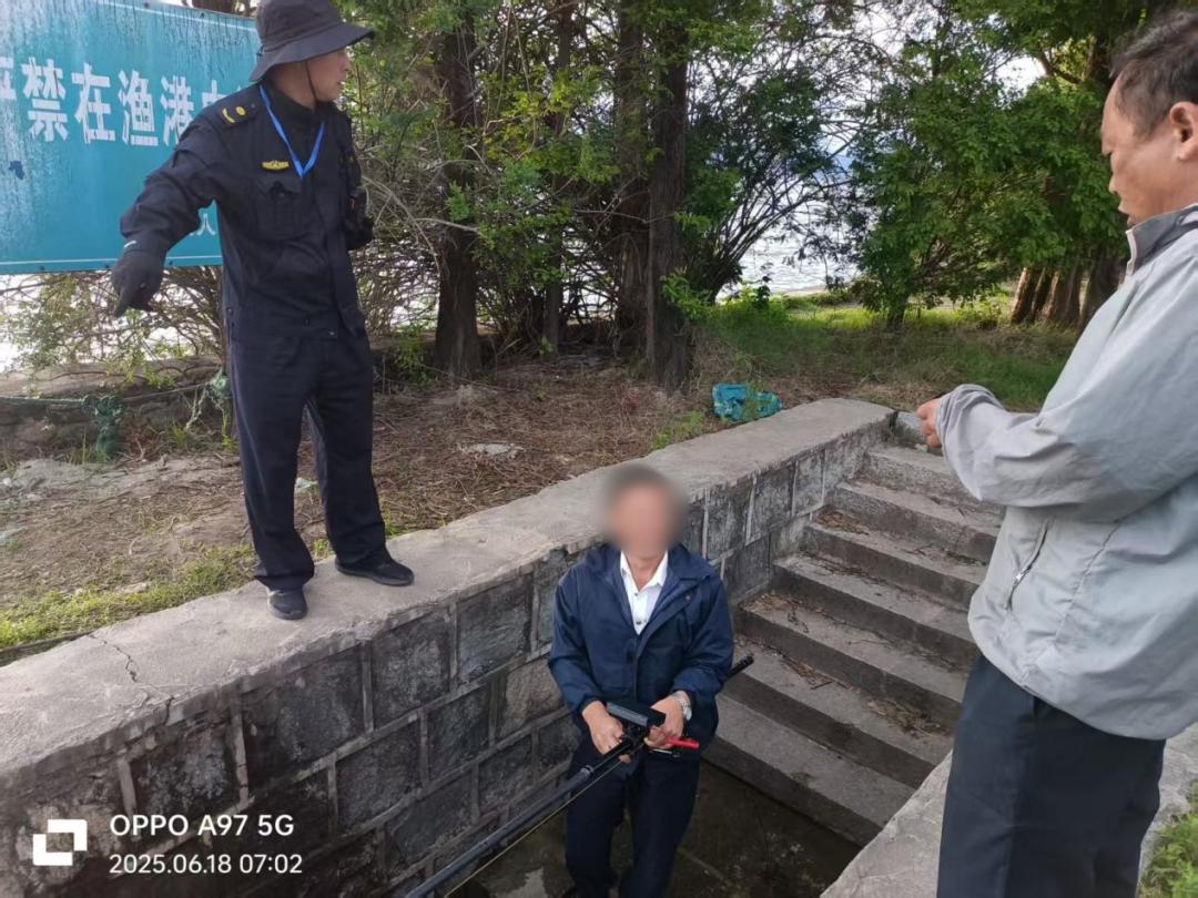 2025年6月18日6时50分,大理市洱海流域管护中心执法人员在巡查过程中,现场查获当事人杨某光在大理镇龙凤港洱海水域范围内使用可视锚鱼竿非法锚鱼。执法人员依据《云南省大理白族自治州洱海保护管理条例》的规定,对杨某光依法处以罚款的行政处罚。