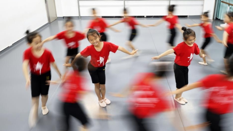 7月12日,在山东省临沂市郯城县郯城街道一家舞蹈培训机构,孩子们在练习舞蹈动作  暑假期间,孩子们通过参加形式多样的活动,丰富暑期生活,畅享快乐时光。暑假期间,孩子们通过参加形式多样的活动,丰富暑期生活,畅享快乐时光。