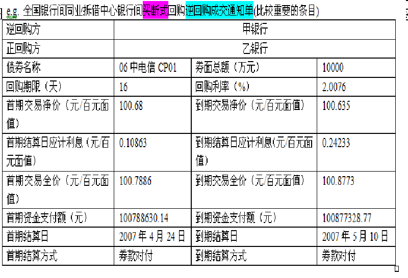 2、银行间回购成交通知单