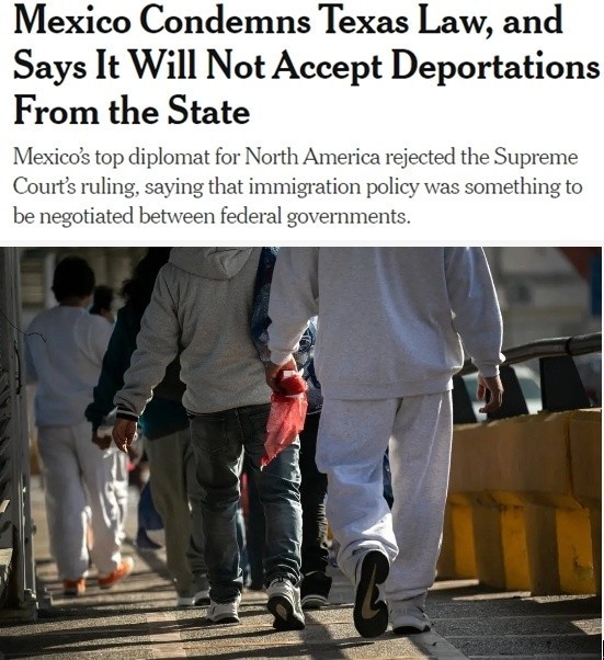 同一天,墨政府向美国联邦第五巡回上诉法院提交相关文书警告,得州移民新法将对在美墨西哥人社区以及墨美双边关系产生负面影响。