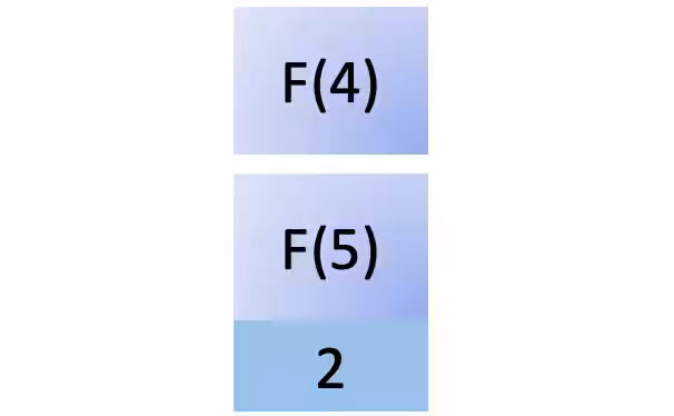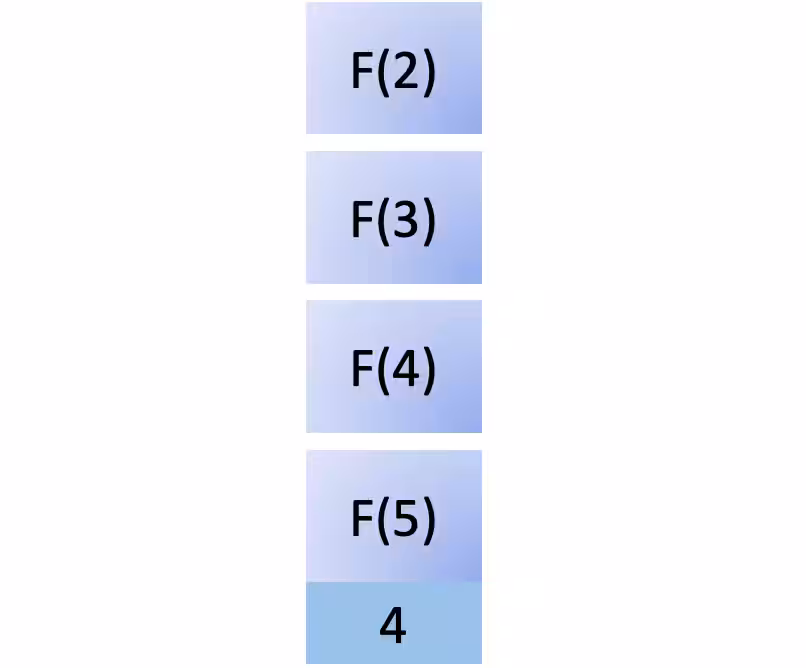 Sie entfernen F(3) vom Stapel, nachdem die Berechnung abgeschlossen ist, und geben das Ergebnis an seinen Aufrufer F(4) zurück. F(4) benötigt außerdem das Ergebnis von F(2), um seinen Wert zu berechnen: