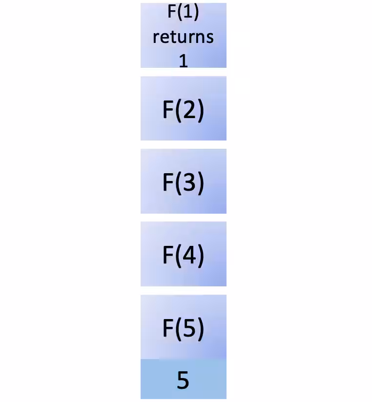 Als nächstes entfernen Sie F(4) vom Stapel und geben das Ergebnis an den letzten und ursprünglichen Aufrufer F(5) zurück: