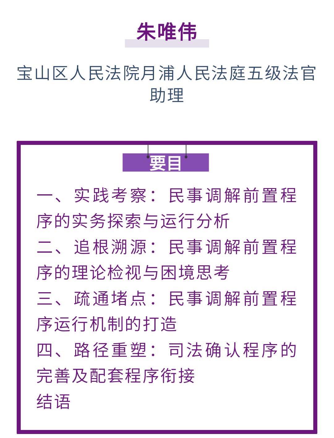 原标题:《朱唯伟|从“诉前委派调解”到“司法确认”之程序重塑——民事调解前置程序的机制构建》