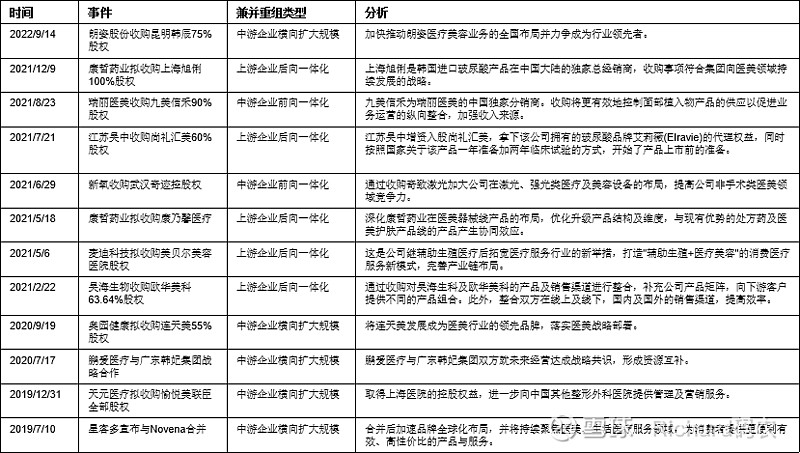 2019~2022年国内医美行业主要兼并重组事件[16]