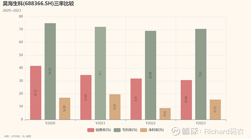 过去四年,昊海生科毛利率在70%~75%之间,净利率在8.93%~19.65%之间。