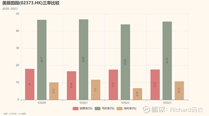 过去四年,美丽田园毛利率在43.89%~46.82%之间,净利率在6.76%~11.7%之间。