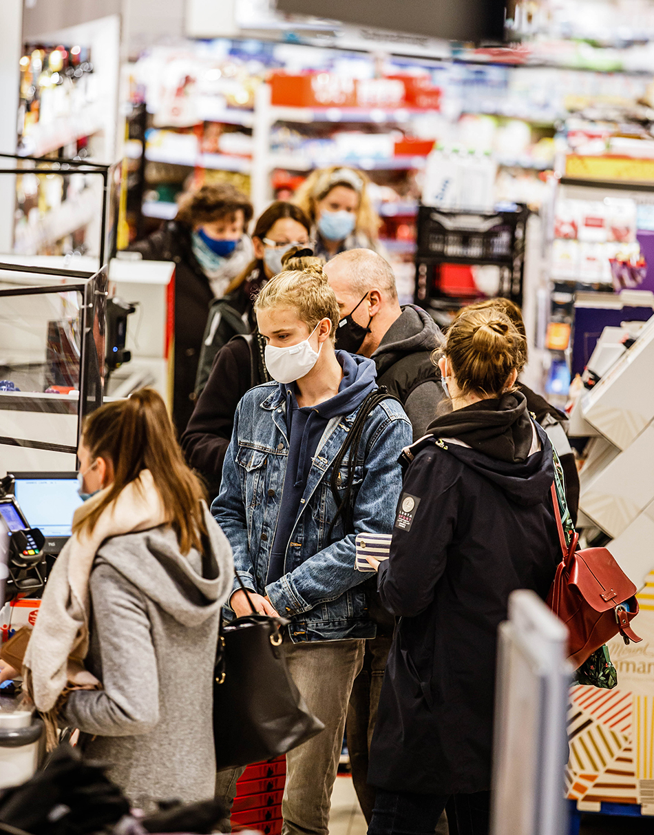 10月14日,在德国首都柏林,顾客在一家商店的收银台前排队。 新华社 图