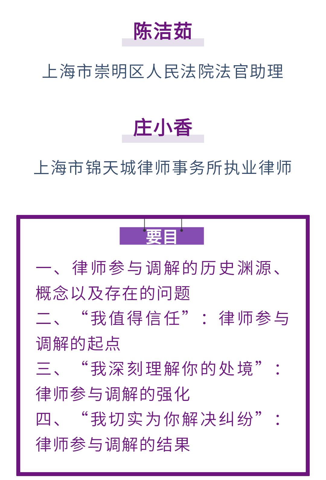 原标题:《陈洁茹 庄小香|法院委派型律师调解员权威性树立问题研究——以家事纠纷解决为视角》