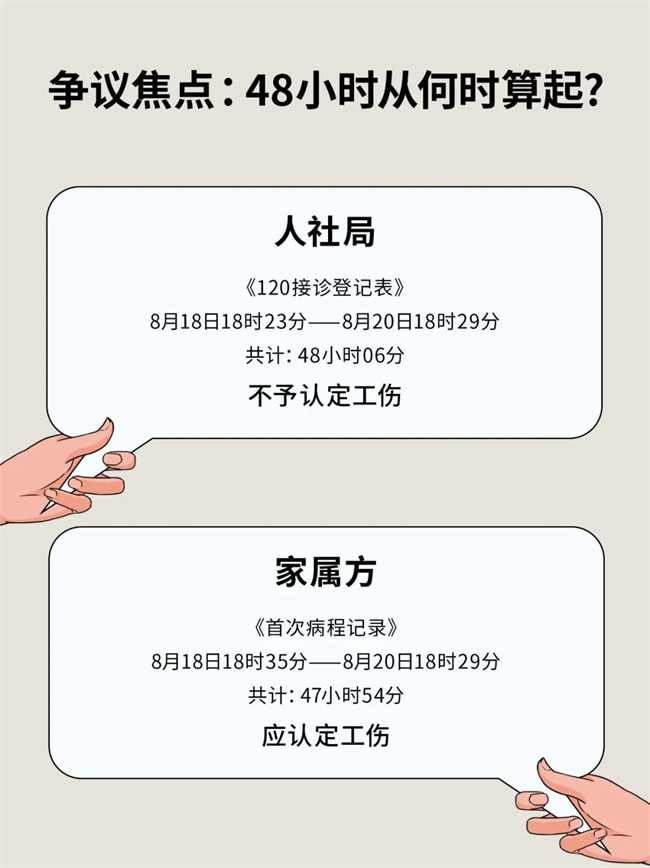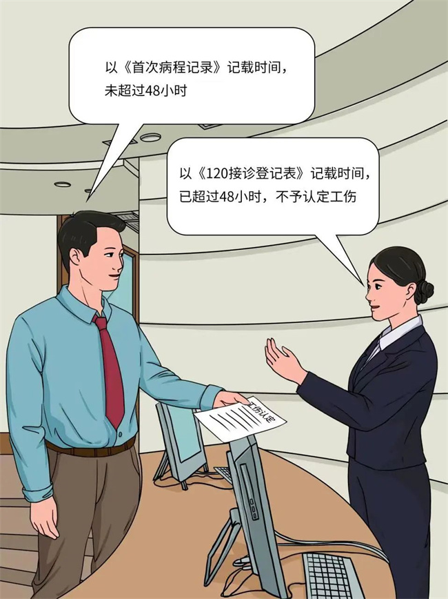 人社局以《120接诊登记表》记载入院时间为起算点,认为马老师从就医到死亡的时间超过48小时,作出不予认定工伤决定。
