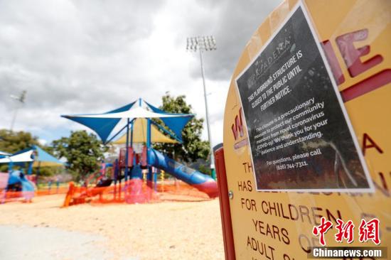 当地时间3月23日,在美国加利福尼亚州帕萨迪纳市,当地游乐场被封闭。