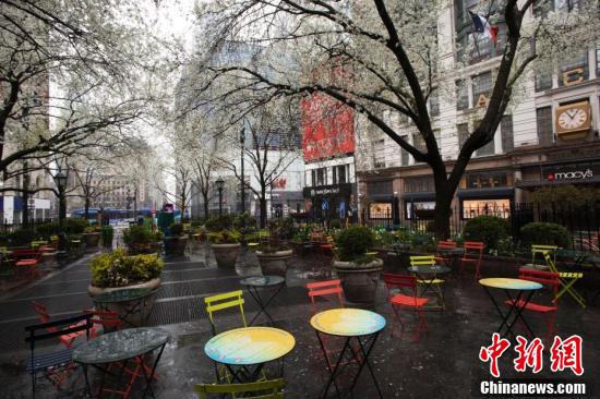 当地时间3月20日美国纽约州州长安德鲁·科莫签署针对该州1900多万居民的行政令,规定全州所有非关键行业企业的工作人员居家办公以缓解新冠肺炎疫情。该行政令将于当地时间22日夜间生效。图为当地时间3月23日,美国纽约州先驱广场的一个公园空无一人。
