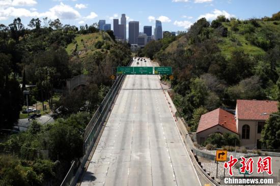 当地时间3月19日美国加利福尼亚州州长加文·纽瑟姆宣布“居家令”,要求全州4000万居民当晚起如非必需不要出门,以遏制新冠病毒传播。根据这一命令,食品店、药店、加油站、洗衣店和银行等生活必要设施仍将继续开放以满足民众生活需求,餐馆的外卖送餐服务仍可继续提供,但民众须保持适当的“社交距离”。命令即时生效,终止日期将视疫情而定。当地时间3月23日,美国加利福尼亚州洛杉矶市,通往洛杉矶市中心的110号高速公路比平时更为空旷。