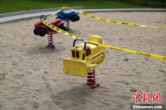 当地时间3月23日,在美国加利福尼亚州洛杉矶,游乐场里的设施被贴上了警示胶带。
