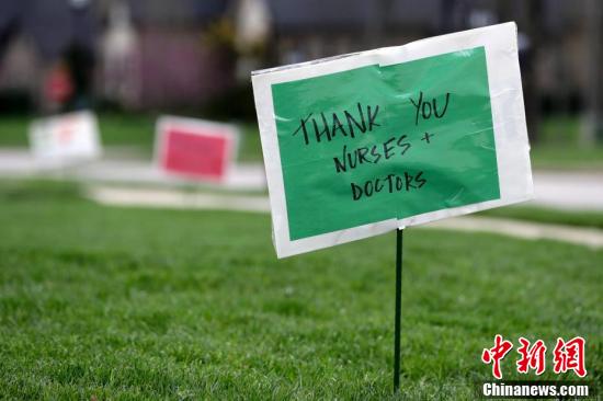 当地时间3月22日,美国田纳西州诺伦斯维尔,一个院子里的标志显示了对护士和医生的支持。