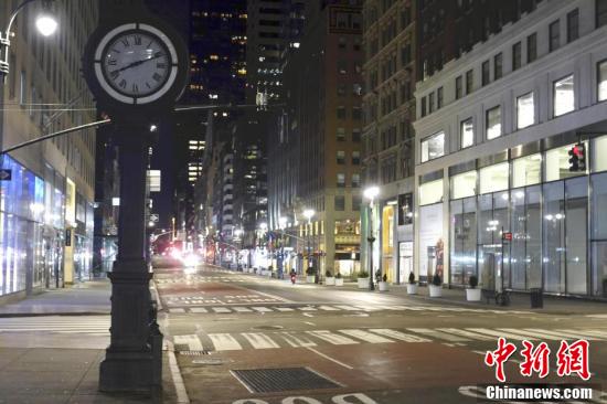 当地时间3月22日,美国纽约曼哈顿的时代广场上很少有人。