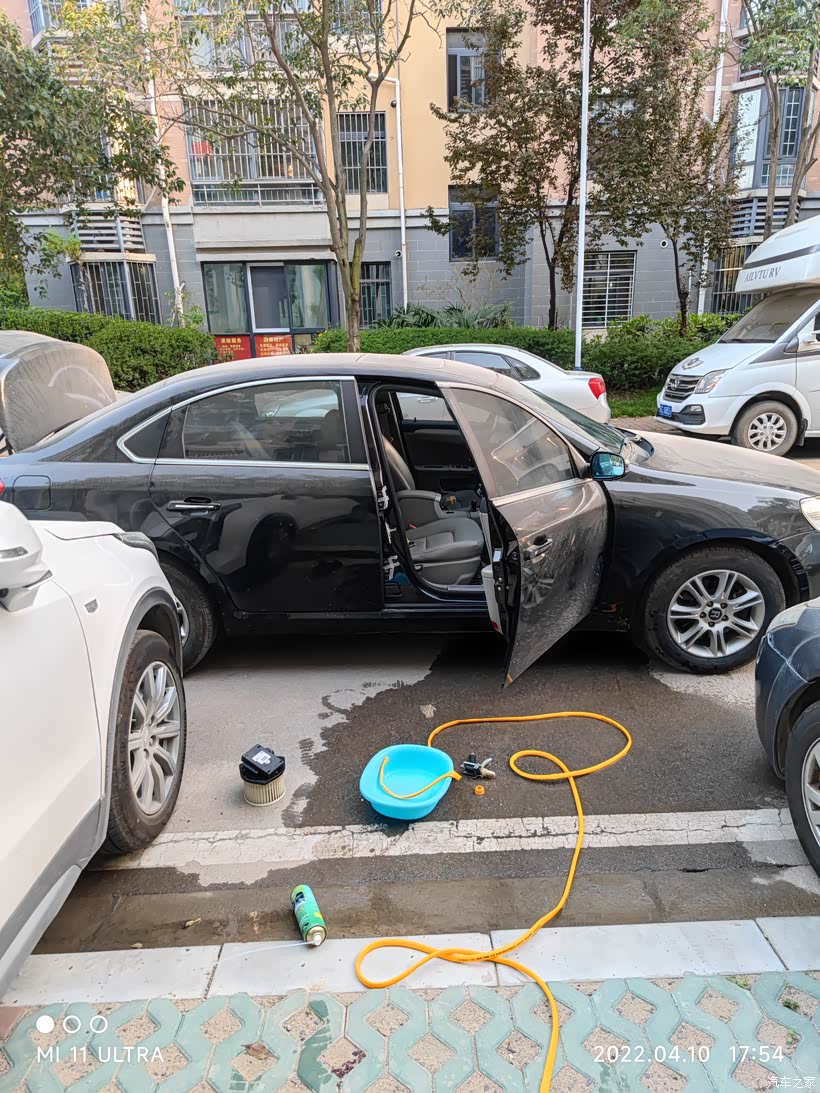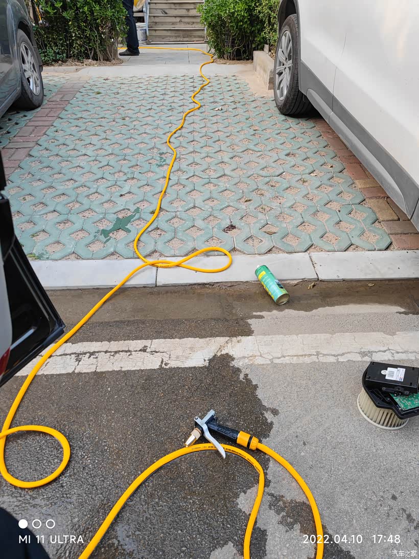 第一步结束后,进行了场地转换,在我家楼下停车场做完第一步,然后静止半个多小时后,把车开到同一小区的我爸妈家,准备之后的操作,为啥换场地?因为那里是一楼靠大路,可以使用水管喷枪。