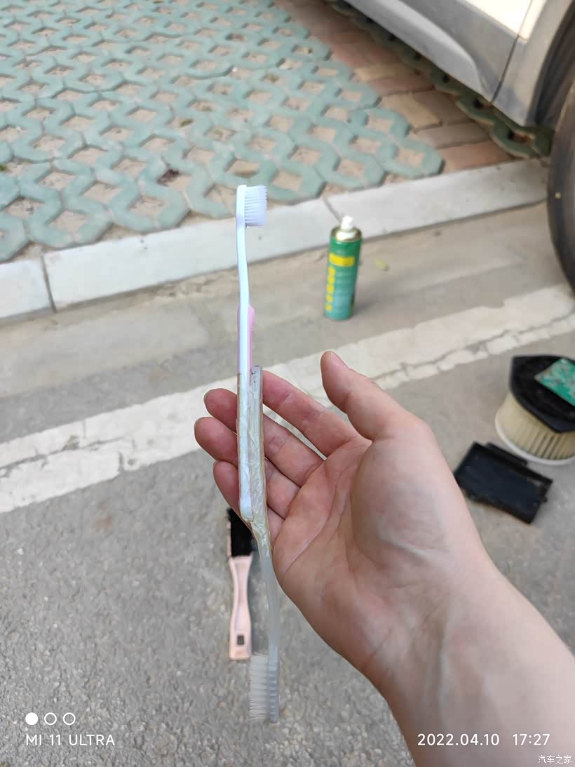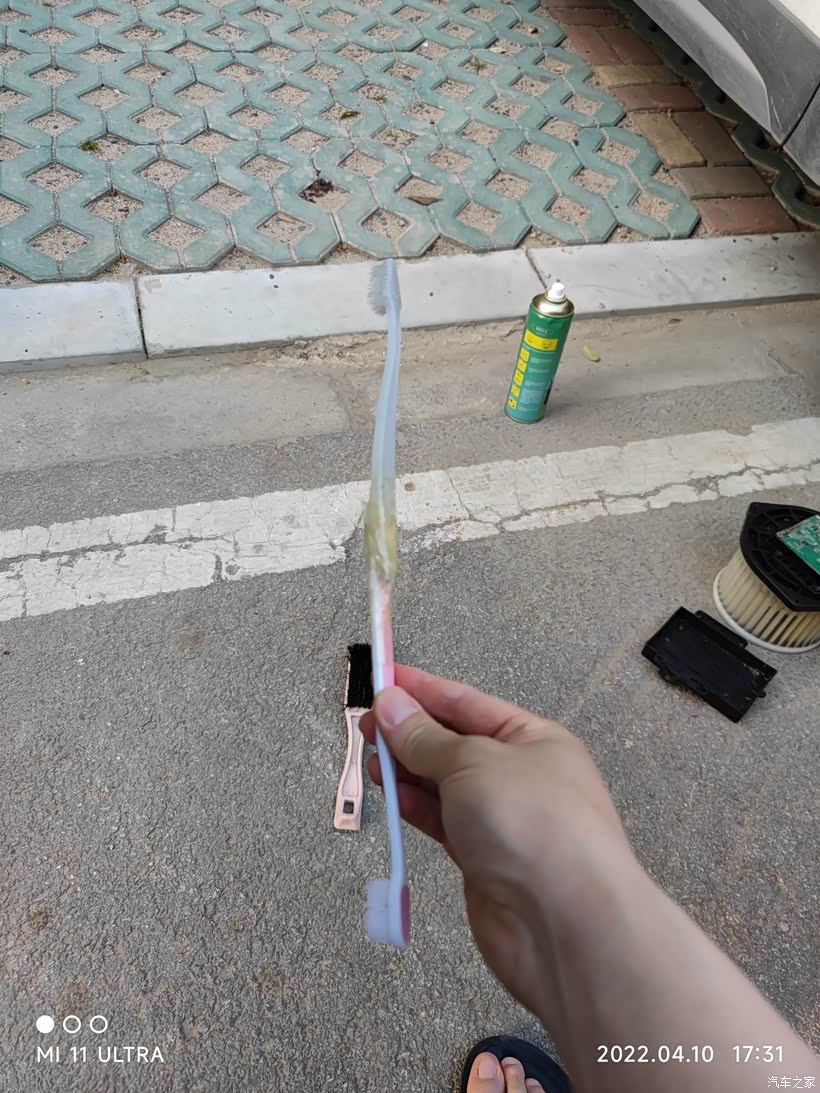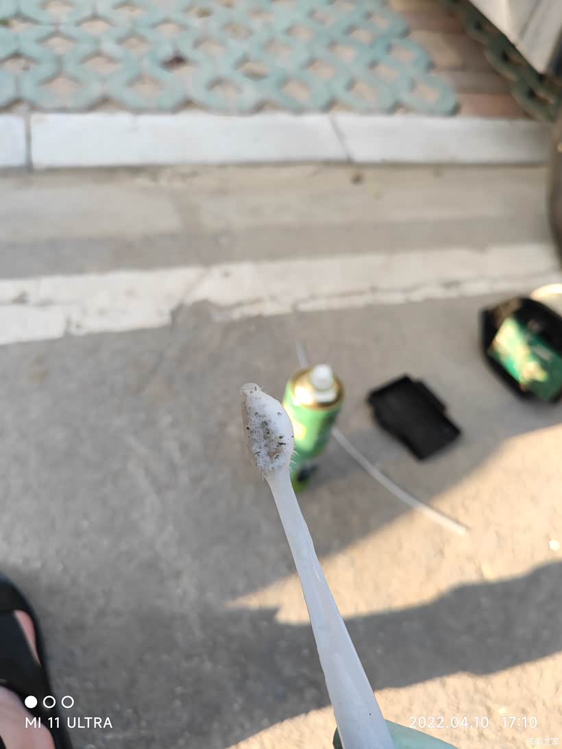 上牙刷,开始对蒸发箱迎风面的物理清理,这一步最难,由于空间狭小弯曲,还深,要跪在地上,胳膊尽量往里伸,同时还得拿着牙刷上下前后的反复盲刷,看不见,只能脑海里想象着刷。