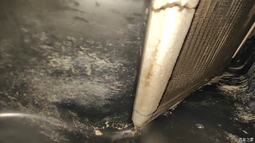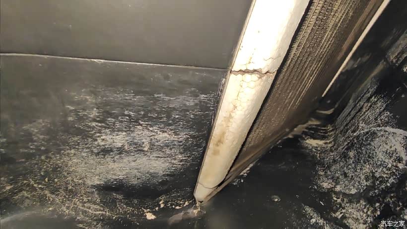 蒸发箱底部,我发现蒸发箱的四周边缘最脏,估计是因为那里的风速与风量小,无法大量带走灰尘与细小纤维。