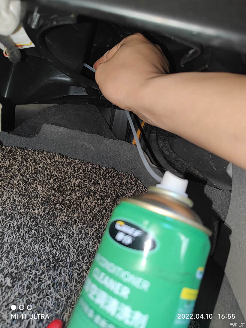 最近天气时冷时热,在开空调制冷行驶后,再开车时由于气温不高,就不开空调了,开车窗就可以了,但我有一个习惯,基本长期开外循环,只在车外扬尘大时才会提前换到内循环,过去后再换到外循环,所以空调出风口在车辆高速行驶时会有风吹出,虽然风速与风量不大,但用手贴着出风口还是可以感受到的,此时就会闻到一个酸臭味,如果此时开空调制冷,这个味道就不明显了。考虑到之前一直有夏天在车外待一小会再进到一直开着制冷空调的车内就会闻到一股不太好闻的味道的问题(虽然适应一会就感觉不到了,但味道一直没变,只是人的鼻子适应了而已),这个问题的主要原因应该就是空调蒸发箱脏了,于是决定彻底清洗一次!