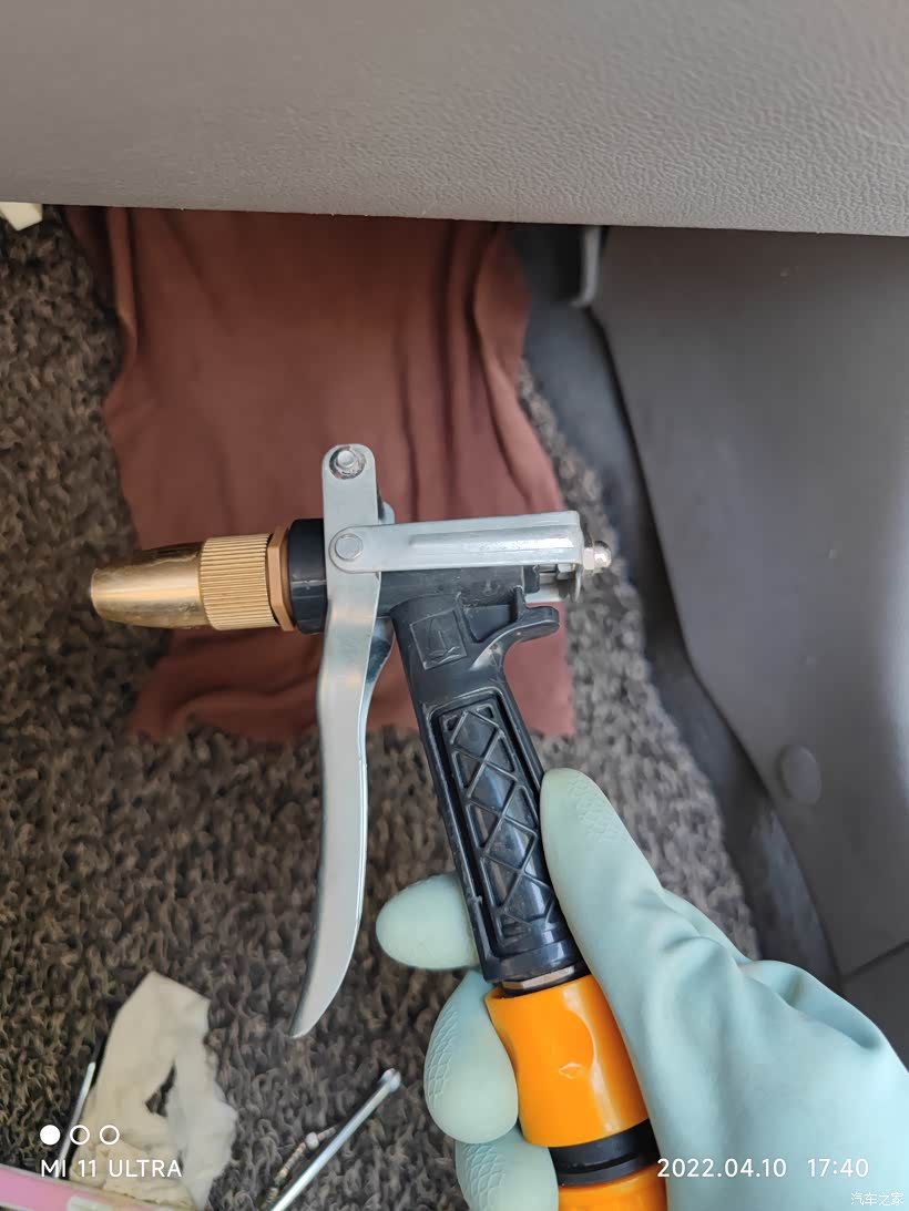 附着在蒸发箱上的清洗剂与污渍的清洗开始,上喷枪,网购的便宜货。