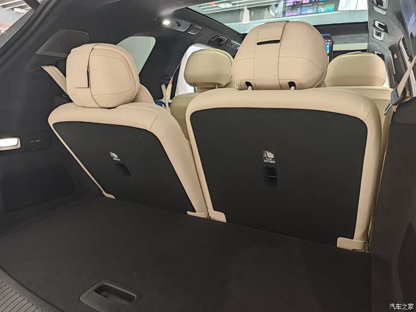 三排座椅放倒是纯平的。另外后备箱带高度记忆,可以物理按键长按,也可以车机屏幕控制。