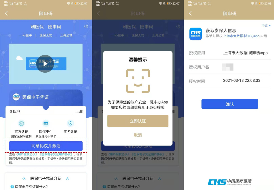 首次使用时,点击“同意协议并激活”→扫脸认证→确认信息后,即可开通“医保电子凭证”服务;
