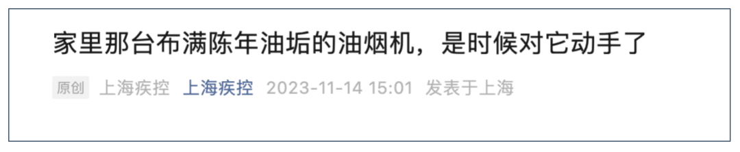 ①2023-11-14 上海疾控《家里那台布满陈年油垢的油烟机,是时候对它动手了》