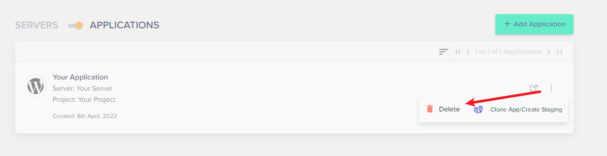 如果需要新添加一个网站,只需要点击右上角的Add Application按钮,然后选择你要创建到哪个服务器上,然后选择WordPress版本,添加名字创建即可。
