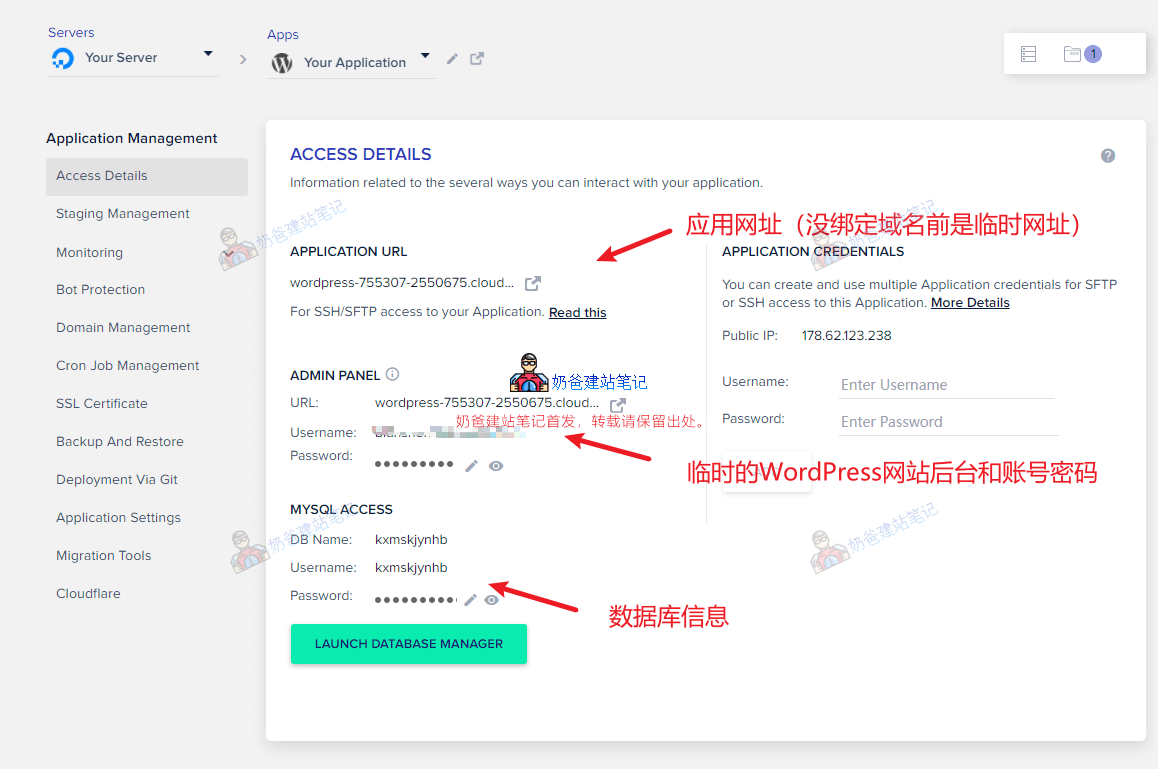 介绍完了服务器,接着我们来说WordPress,安装好服务器之后,Cloudways默认已经给你安装好了WordPress。