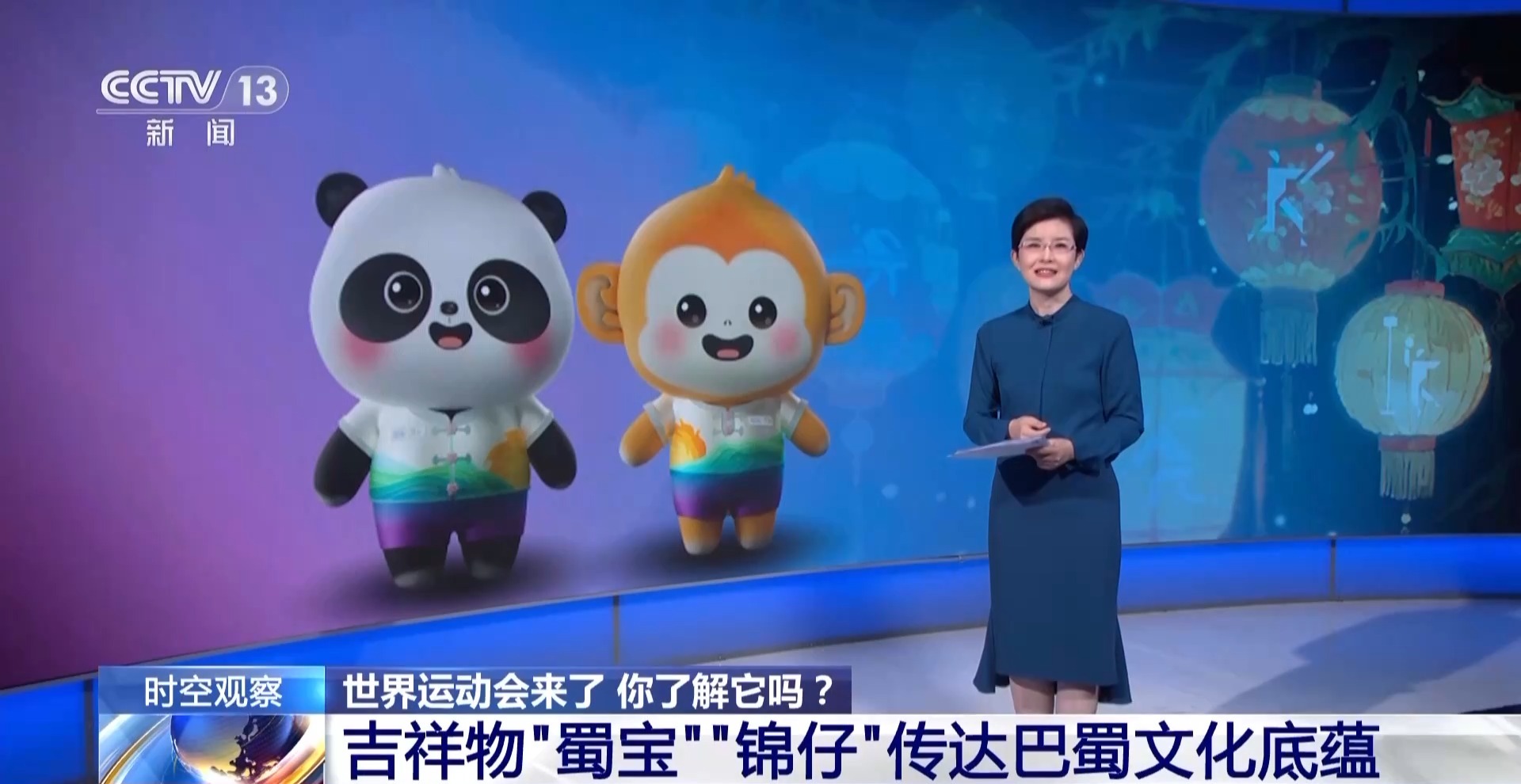 成都世运会的吉祥物“蜀宝”“锦仔”,以大熊猫、川金丝猴为原型,名字以四川成都特产我国四大名锦之一的“蜀锦”为灵感。