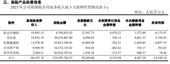 2023年年度报告显示,车险业务保费收入超过责任险与短期健康险成为第一,同时该公司新能源车险累计保险金额达279亿元,为22461位新能源汽车司机提供风险保障。其中,新能源网约车车险比高达99.06%,保险金额达274亿元。