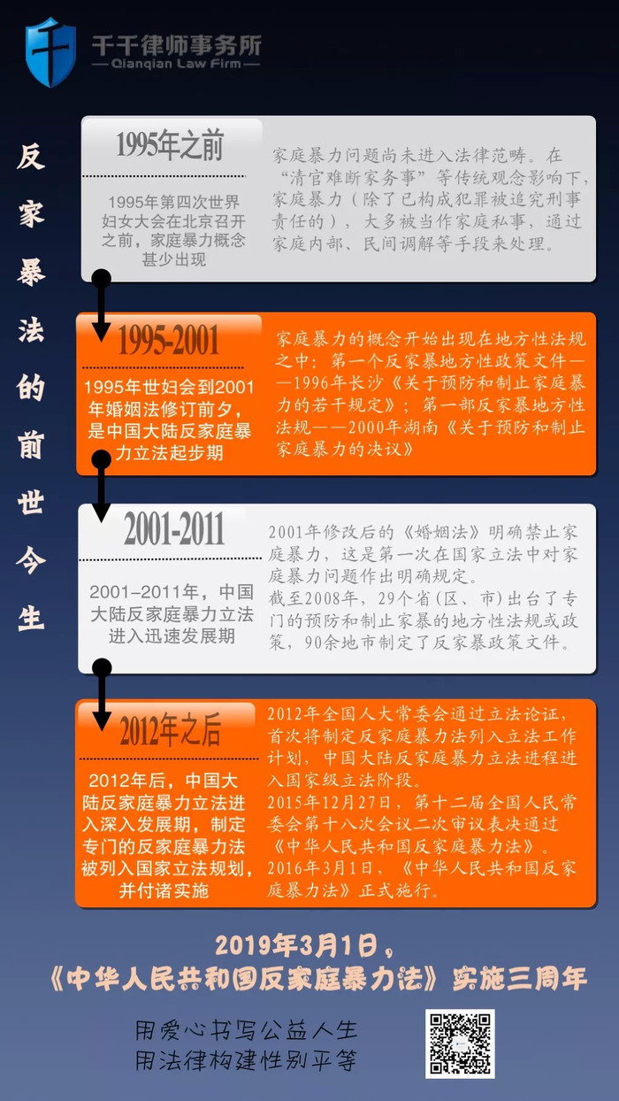 值此特殊时间,千千律师所微信公众号将陆续精心编辑推出反家暴系列推图,聚焦中国反家暴立法进程、家暴定义,重塑对家暴问题的认知,以及遭遇家暴时,如何取证与如何寻求有效救济等热点焦点问题,敬请关注。本期推图主要聚焦中国反家暴的立法进程。