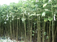 2、时间对比。苎麻属多年生植物,再生能力很强,一年季,生长也很快,当年栽种,当年见效。第一年干麻亩产可达80公斤左右,第二年就进入丰产期,其干麻年亩产为150-200公斤。苎麻生长期很长,一般在50年以上,只要不更换品种,苎麻就可以年复一年地生长,是一种具有长久效益的经济作物。若栽植经果林,一般3-5年才进入丰产期,且郁闭度只能达到70-80&,而苎麻一年后就进入丰产期,郁闭度可达100%;经果林一般10年左右就要退化,需要更换新的品种或嫁接幼苗,投工投资较大,对保持水土也很不利,而苎麻可以永远再生,产量不减。退耕地植树虽然效益也很好,但“十年树木、百年树众人”,前十年树木生长很缓慢,一般十年后才能收到明显的经济效益,间伐后还需要复植,投资相应增多,且十年内树木的郁闭度也只能在70%左右。所以栽植经果林和树木还不是一项“吹糠见米”的措施,而种植苎麻,投资少、时间短、见效快、覆盖率高、抗蚀力强,保持水土效果好。