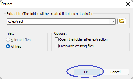 Choose the destination directory for extraction. If you want to extract all files, you should select "All files" option.