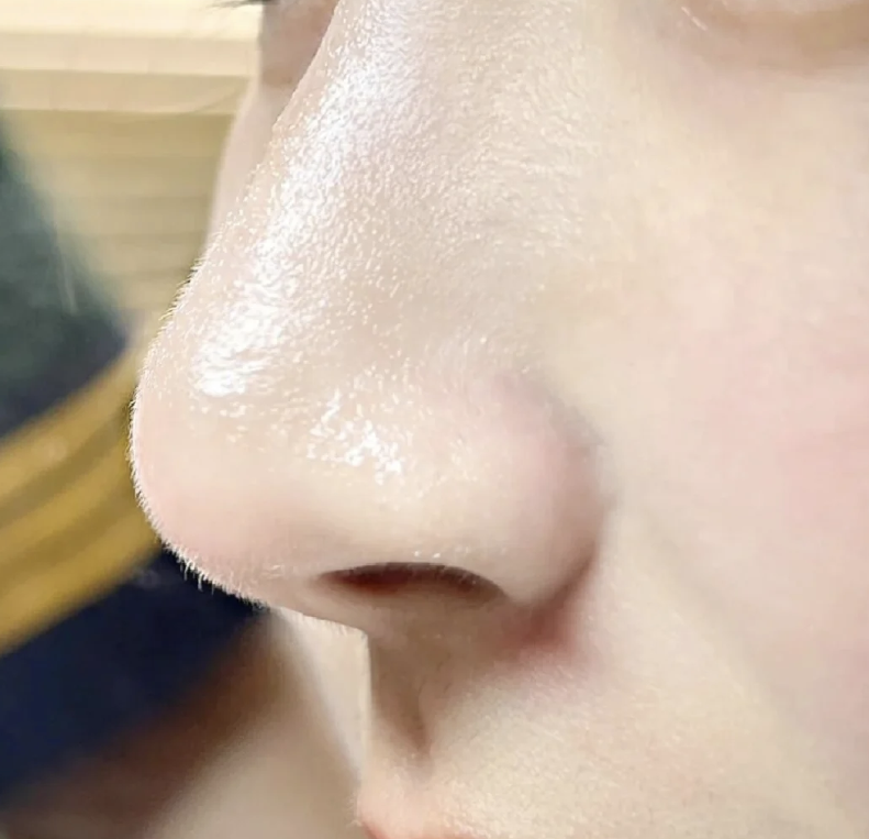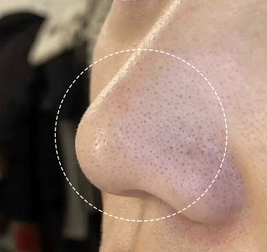 Before:鼻头黑头多、有痘痘,整个鼻子看起来状态很差;