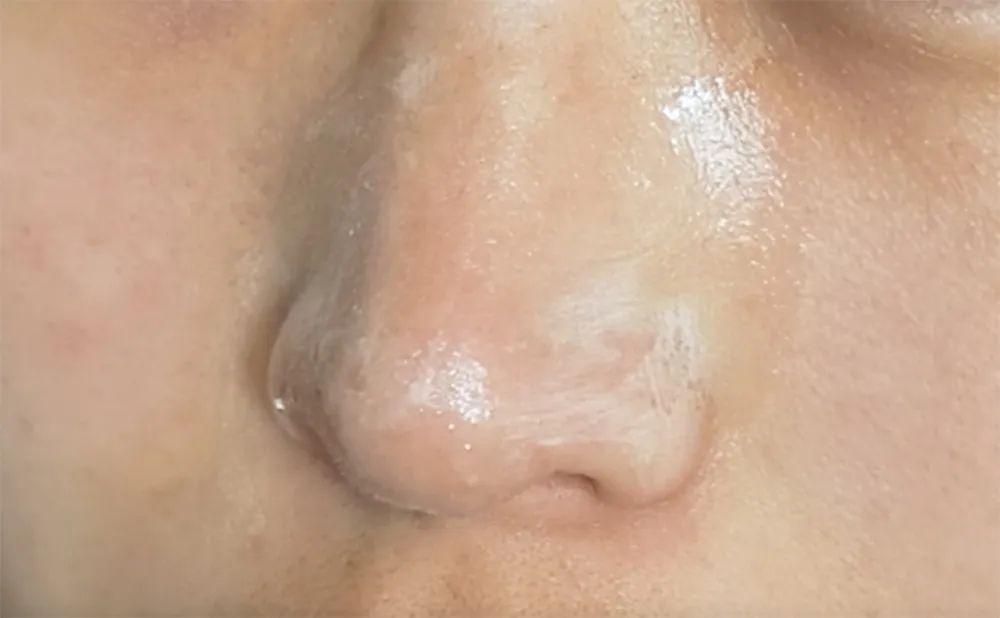 1.洗完脸后,挤出凝胶,均匀涂抹在鼻头和两侧。▼