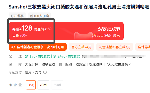 更好运的是,品牌虽然在日本很受欢迎,但在咱国内还比较小众,也很需要品牌宣传,日常价一支要159元,618活动后也得128!