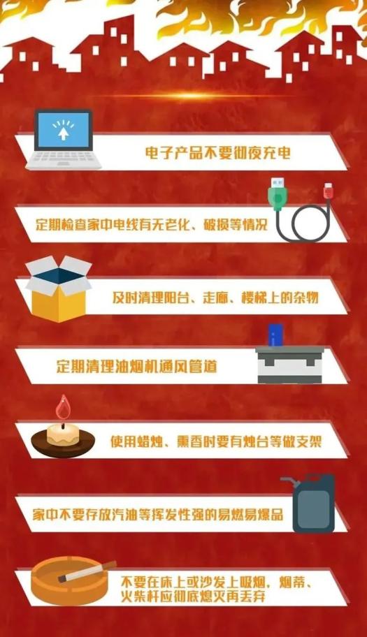 年关将至,气温逐渐降低,家中用火、用电、用气量增加,防火工作显得尤为重要。在日常生活中,学习好相关消防安全知识,改掉不好的习惯,也能更好的避免火灾事故的发生。