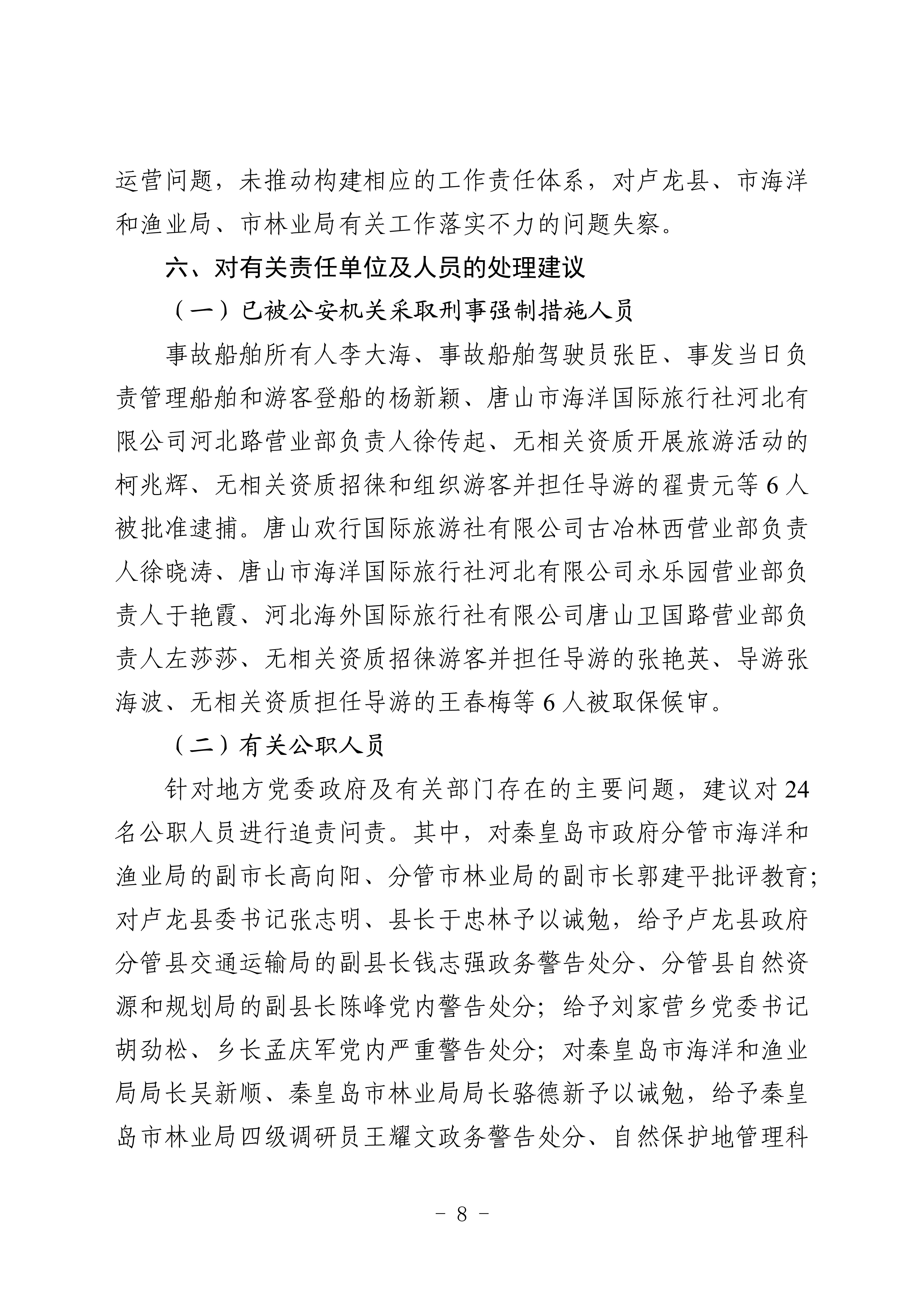 央视网消息:据河北省应急管理厅发布的《卢龙“4·13”事故调查报告》,4月13日14时25分左右,秦皇岛市卢龙县刘家营乡桃林口村青龙河水域,一载有31名乘客的“三无”船舶行驶途中倾覆,乘客全部落水,造成12人死亡、7人受伤。