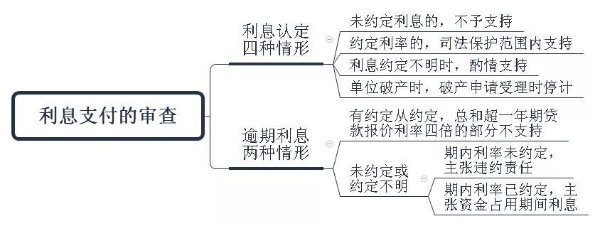 根据《民间借贷若干问题的规定》第28、29条规定,逾期利息的审查应区分以下两种情况: