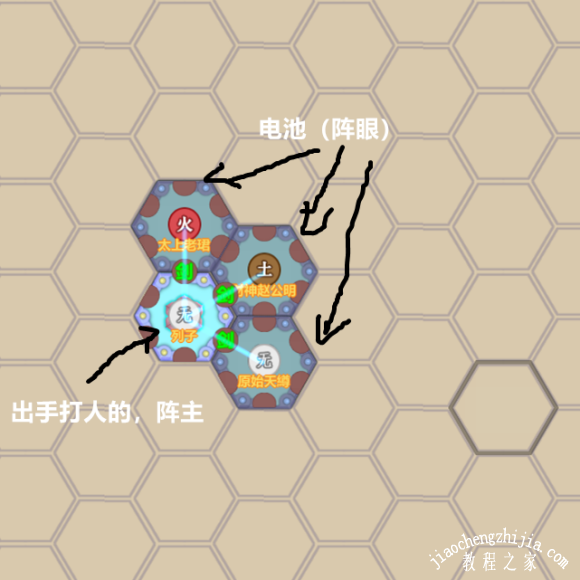 一、一个主力小人打架,只有主力小人动手,他叫做阵枢,后面几个人作为给主力充电的电池,不动手,就是阵眼了