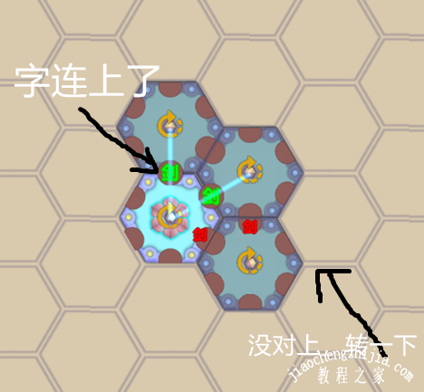 七:当把两个六边形的一样的半个字都对上,这个字就生效了,当然阵眼到阵枢一路连接的最好是相生的属性。