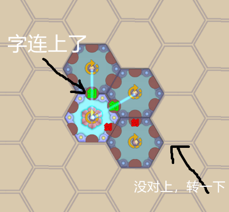 七:当把两个六边形的一样的半个字都对上,这个字就生效了,当然阵眼到阵枢一路连接的最好是相生的属性。