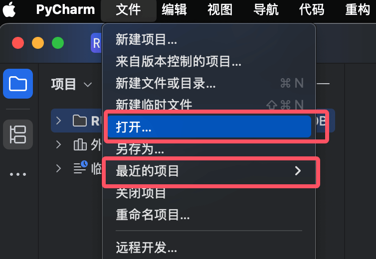 3. 项目常用操作 3.1 打开多个项目PyCharm 默认单项目模式(一次只能打开一个项目),但可以通过以下方式管理多个项目: