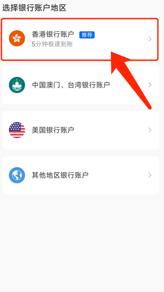 选择拥有银⾏卡种类。例:拥有⾹港银⾏卡,选择⾹港银⾏账户;如果拥有其他银⾏账户,请选择对应银⾏账户