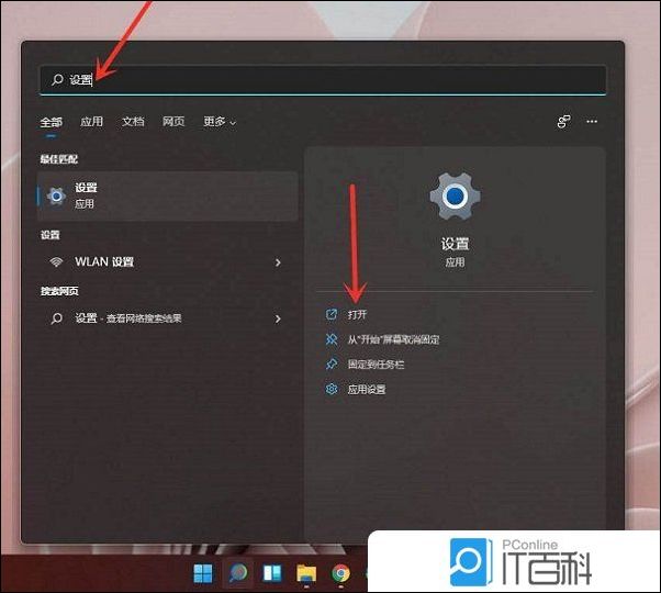 方法2)按 Win + S 组合键,打开Windows 搜索,搜索框输入设置,然后点击打开系统给出的最佳匹配设置应用,当然也可以将设置固定到任务栏;