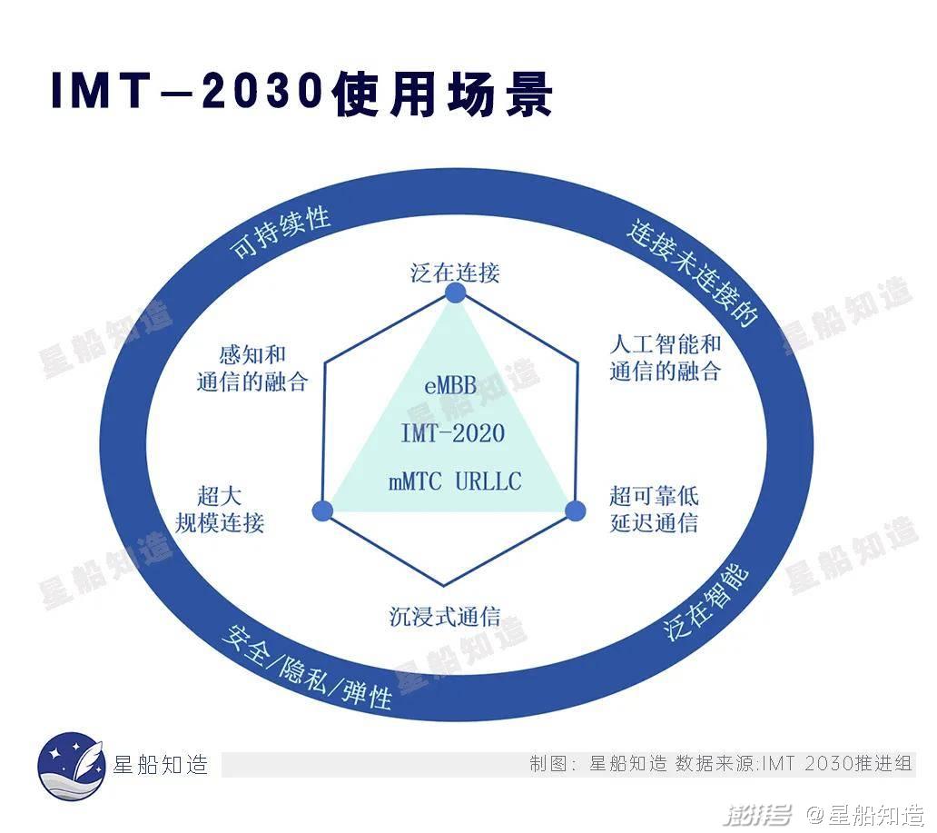 6G设想启用新的使用场景,包括沉浸式通信、超可靠和低延迟通信、超大规模通信、无处不在的泛在连接、普惠智能与通信、综合传感和通信六大应用场景。